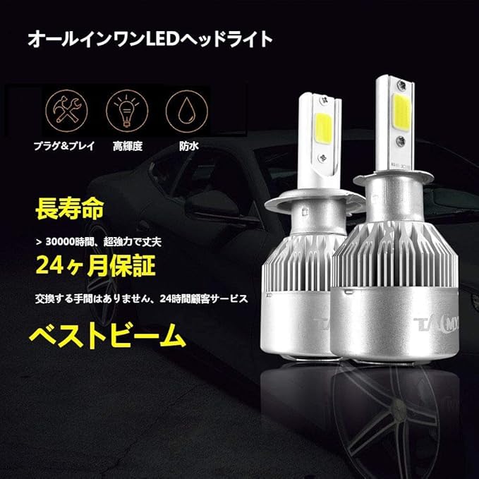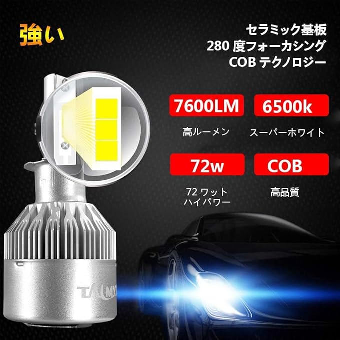 TALMYT2020 ヘッドライト LED H3 6500K 7600LM DC9V-32V CSP社製LEDチップ搭載モデル 放熱ファン付き1年保証 2個セット