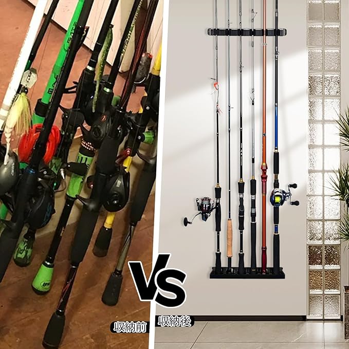 【使用便利】このロッドスタンドは機能性はもとより、大切な釣り竿を壁掛け収納することでオシャレなインテリアと変わります。釣りに行こうと思った時、数秒で欲しい釣り竿は確認できるので、効率アップし、貴重な釣り時間を楽しむ時間を伸ばすことができる!