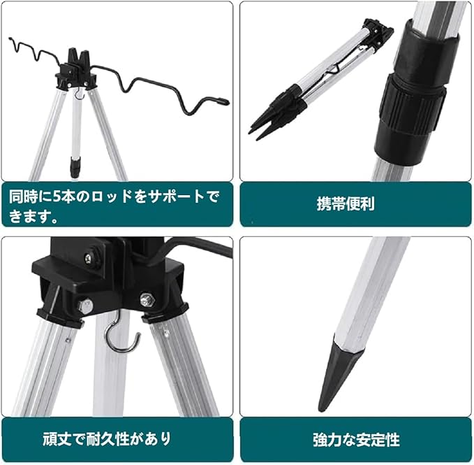 携帯便利:重さは約430gと軽量で、使わない時はコンパクトに折りたためるため、持ち運びもラクラクです。同時に5本のロッドをサポートできます。様々な釣り竿を使用したり、複数人での釣りにも適しています。