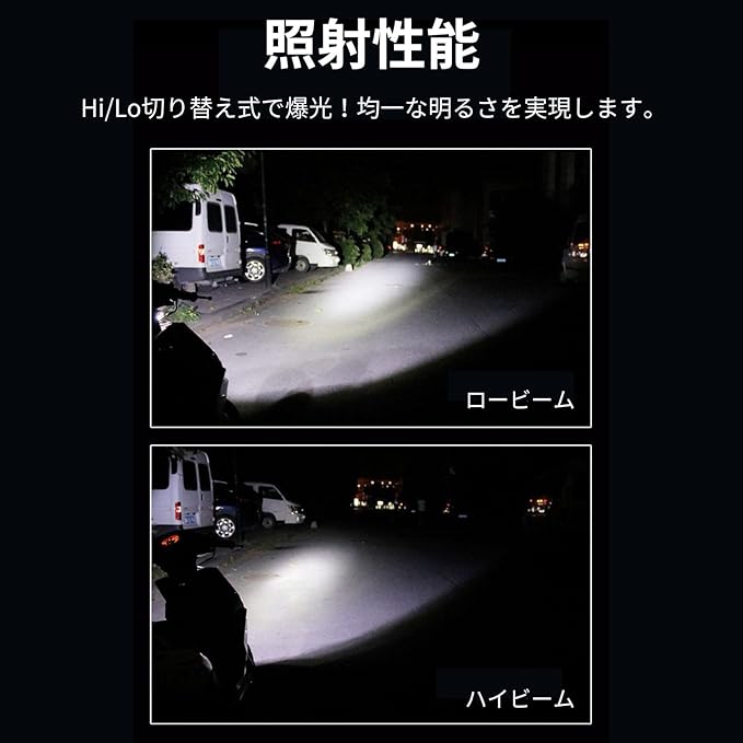【圧倒的な配光性能と光軸調整不要】 1:1ハロゲンビーム設計で、ムラのない美しい光を実現しました。ロービームは広い範囲を明るく照らし、ハイビームはより遠くまで照射可能です。広範囲の配光と明るさで、夜間の運転がより安全になります!視界を確保し、安全運転をサポートします。これまでのハロゲンバルブでは実現できなかった爆光を体験してください!