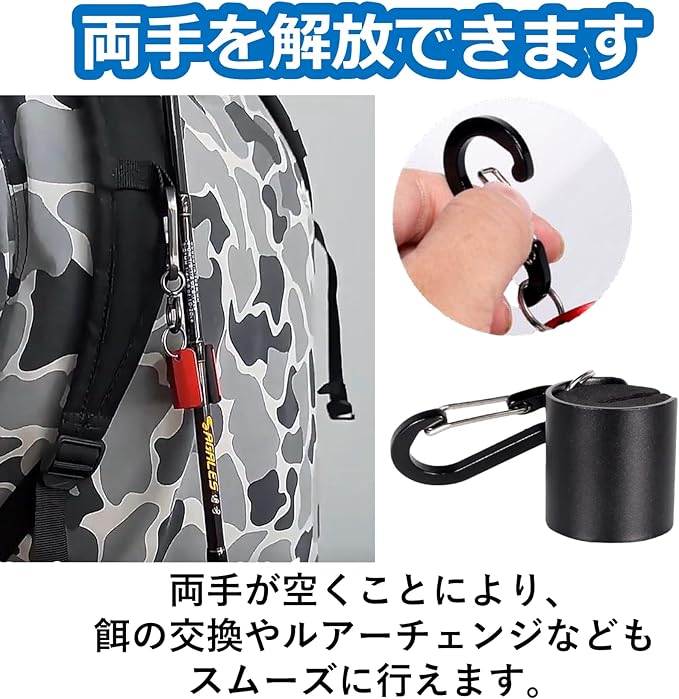 ・カラビナ付で、ライフジャケットやベスト、バッグ、ウェーダーなどに自由自在に装着できます。