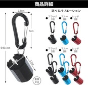 【サイズ】全長18㎝(ホルダー部)幅2.7㎝長さ3.2㎝(カラビナ部)幅2㎝長さ5cm(重量)14g【個数】1個セット、2個セット【カラー】黒、赤、青