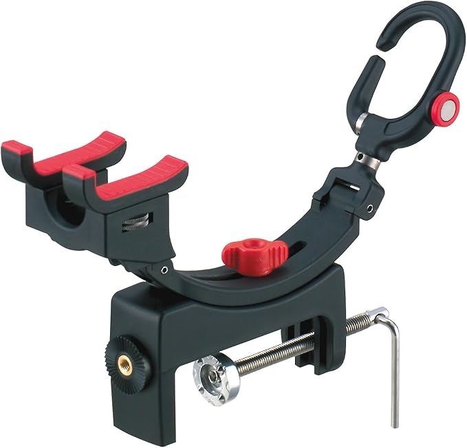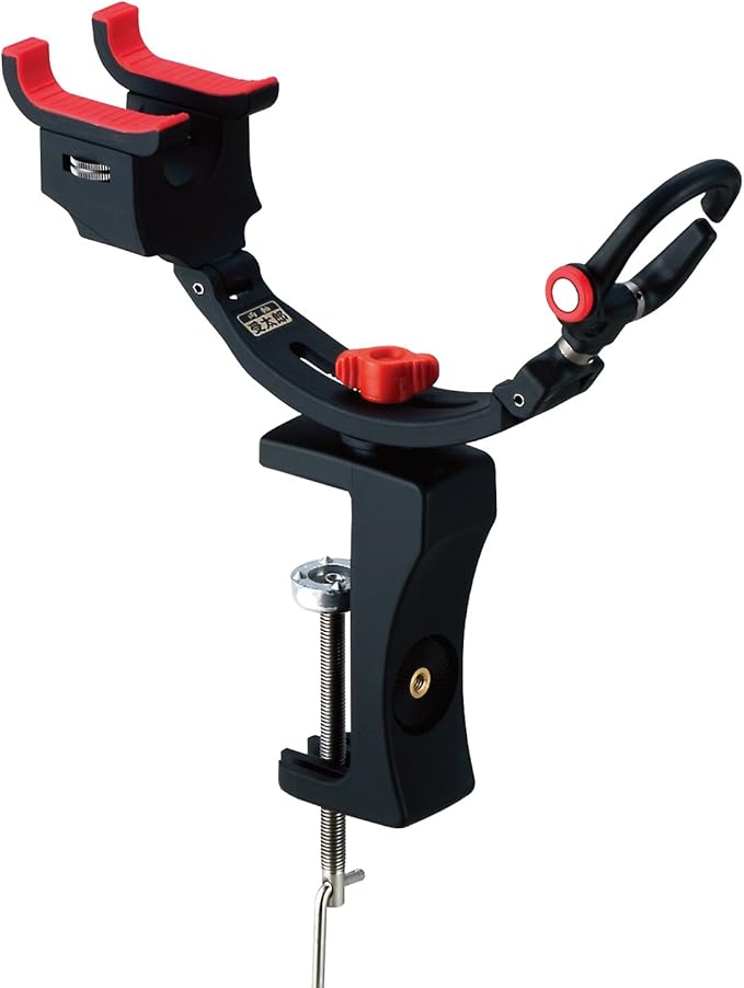 クランプはタテヨコ取付が可能で竿受の首振り・角度調節も自由自在です。