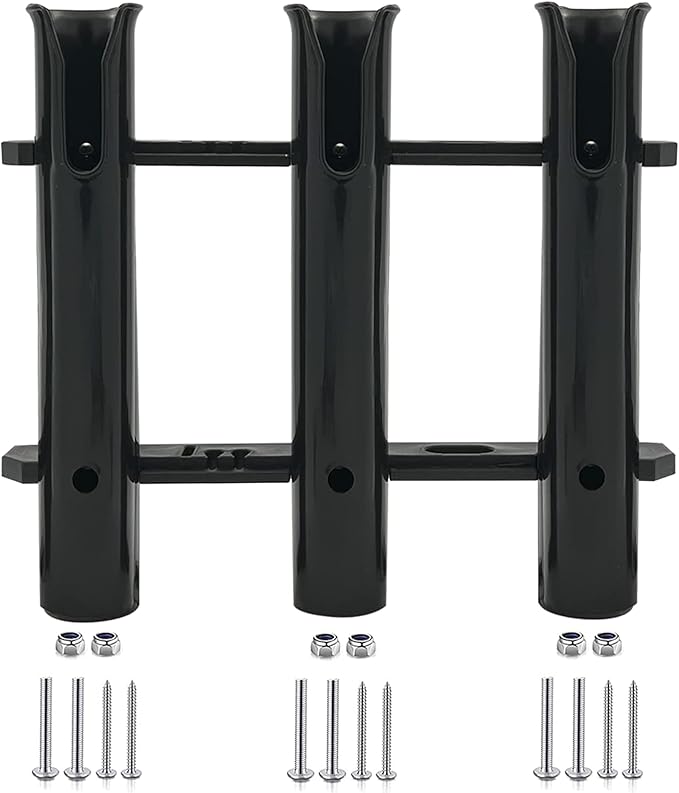 ISURE MARINE ボート ブラック 3ポール サイドマウント ロッドホルダー ブラケット 釣りツールホルダー チューブ 3ロッドラック プラスチック PP ネジ付き サイドマウント