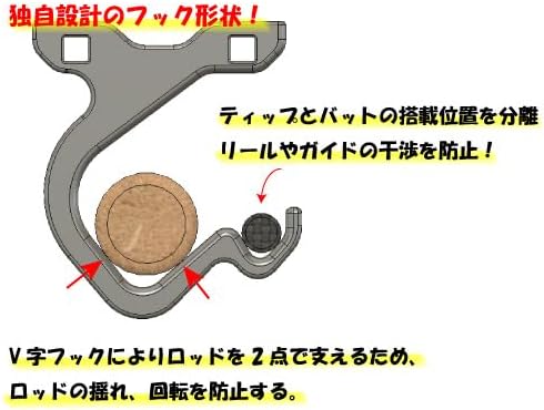 ・ワンタッチでの取り付け取り外し 使用しないときには簡単に取り外すことが出来ます。 ・ロッドを5本搭載可能 ・独自開発のV字フック ロッドの揺れや回転を防止し、リールやガイドの干渉を防ぎます。 ・W型フック ティップとバットを分けて搭載することにより、繊細なティップやガイドの干渉を防止します。 ・ロッドの搭載が簡単 ロッドをベルトの上に載せる、バンドで縛る等の作業が不要なため、ポイント移動等でのロッド上げ下ろしのストレスがありません。
