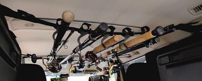 機能と価格を両立した車載用ロッドホルダーです。 一般的なベルト式のロッドホルダーは、安価ですがベルトの上にロッドを搭載するため、ロッドの上げ下ろし作業が非常にやりにくいという問題がありました。 らくさくロッドホルダーは、独自設計のロッド搭載フックによりロッド上げ下ろしの作業性が格段に向上しています。 取り付けも簡単で、使用しないときはワンタッチで取り外すことが出来ます。