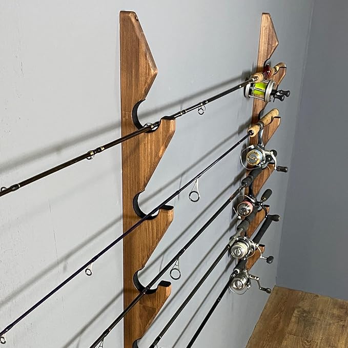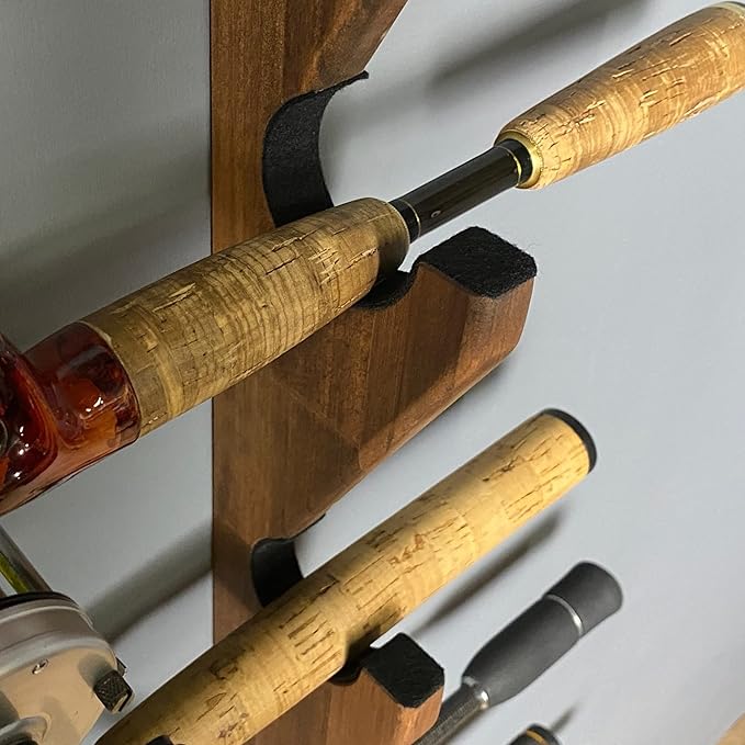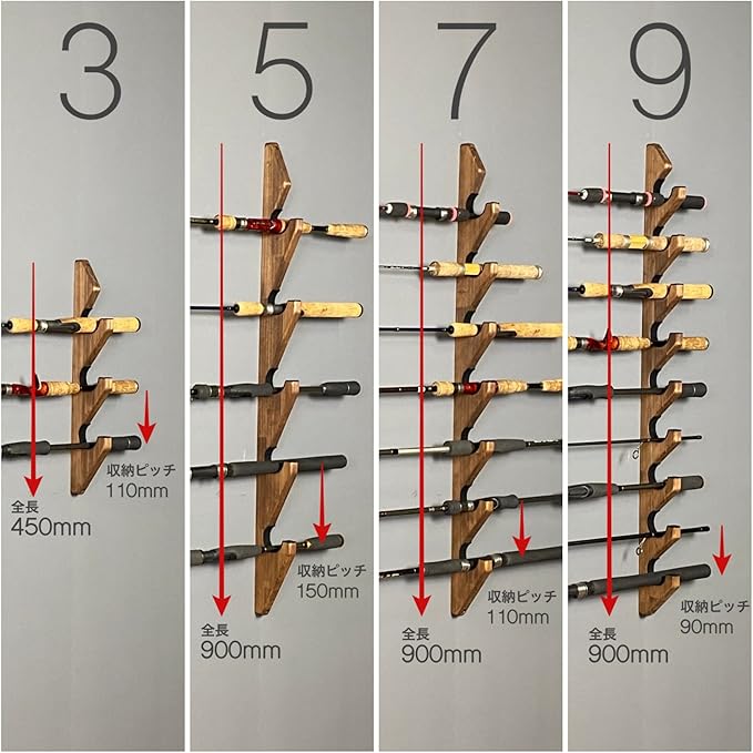 WOOD WORKS 日本製 ロッドスタンド 壁掛け用 (9本掛 本体【ブラウン】フェルト【ブラック】)