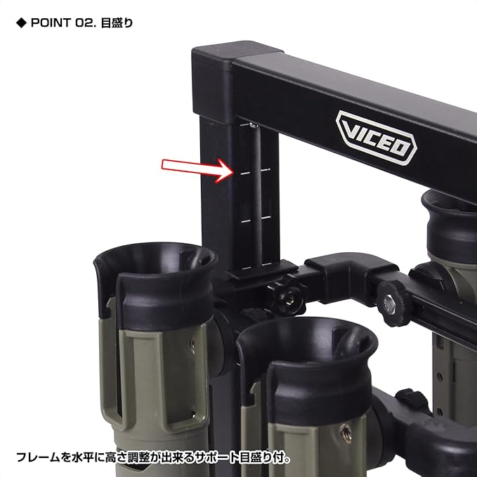 ビセオ(VICEO) ターンロックロッドストッカー 4本用/6本用 カラー:オリーブドラブ (商品コード:VC275) 角度調整が可能な多目的ロッドスタンド 【自宅屋内から釣場の竿受けに/回転式ロックキャップ機構採用】