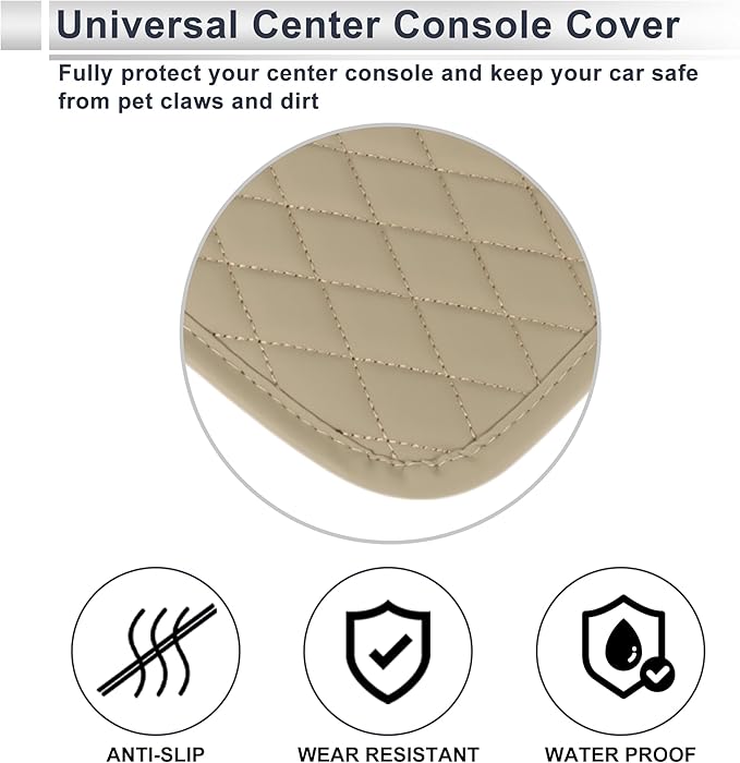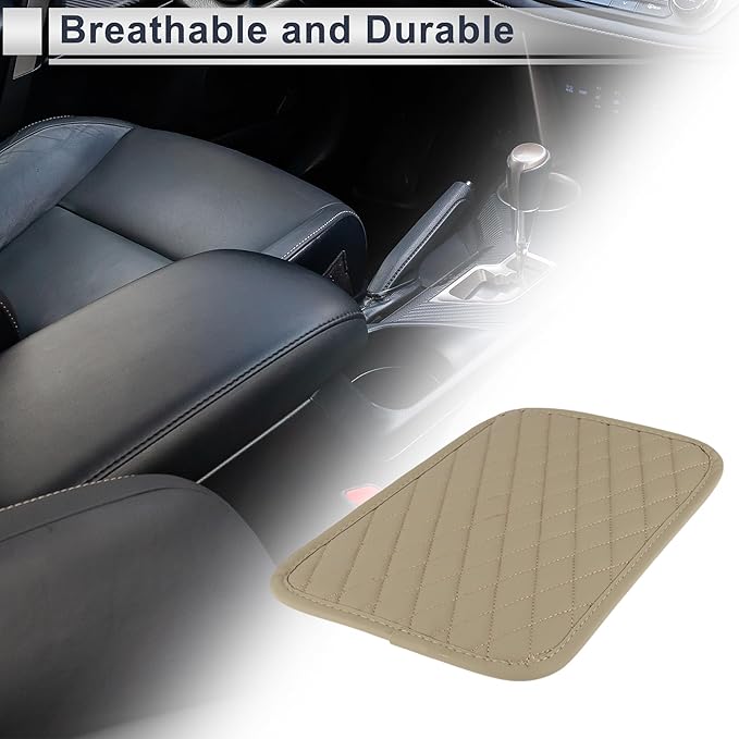 車用 センターコンソールカバー センターコンソールクッション 11.81"x7.87"x0.59" ベージュ ナッパレザー