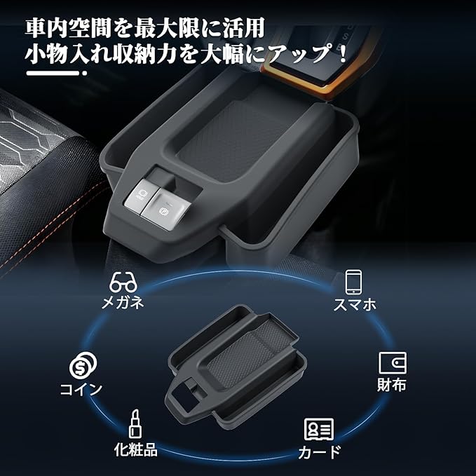 【収納スペースがUP!】スマホやティッシュ、サングラスなどの小物を収納可能。滑り止め加工済みのラバーマットで、防塵・防キズ・カタカタ異音を減少し、使いやすくて綺麗な車内を実現します。コンソールにより広い収納スペースを増設し、より便利で快適な車内空間を実現します。