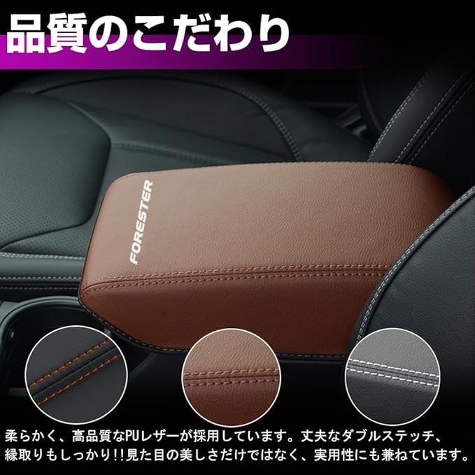 スバル フォレスター SL系 専用 レザーアームレストカバー FORESTER センター コンソールボックス カバー 傷 汚れ防止 被せるだけパーツ 内装 カスタム アクセサリー ドレスアップ パーツ (ブラウン&ブラウンステッチ)
