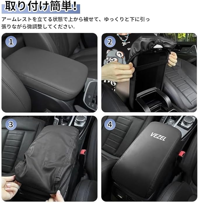 【ヴェゼル‐RV系・専用設計】この アームレストカバー はヴェゼル RV3 RV4 RV5 RV6などのRV系の全グレードに対応します。車種専用設計のため、フィット感がよく、車の内装に違和感なくぴったりフィットします。この商品は実車にフィッティングを確認した内装パーツです。更に、 VEZEL ロゴがあり、車の高級感を損なわなく、車内のインテリアにもなります。4つのカラーをご用意しておりますので、ニーズに合わせてお選びいただけます。