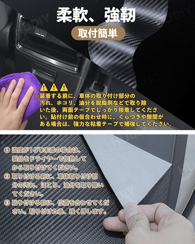 [簡単取付] 実車に何度もフィッテイング確認を実施し、車体イメージを壊さず、丁寧に寸法をとった完全車種専用設計です。1枚でインストールが完了し、専用ツールは必要ありません。はがした時に糊が残らず、車内装飾を傷つける心配がありません。