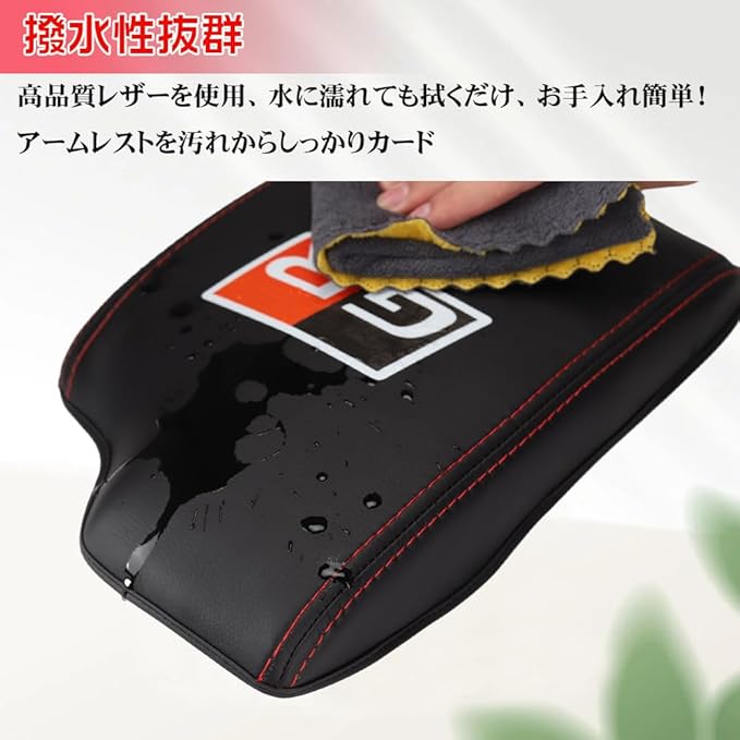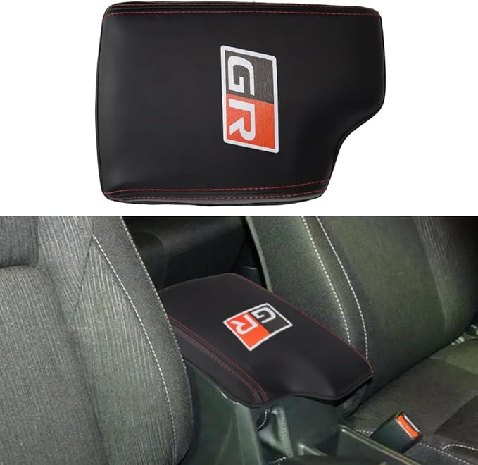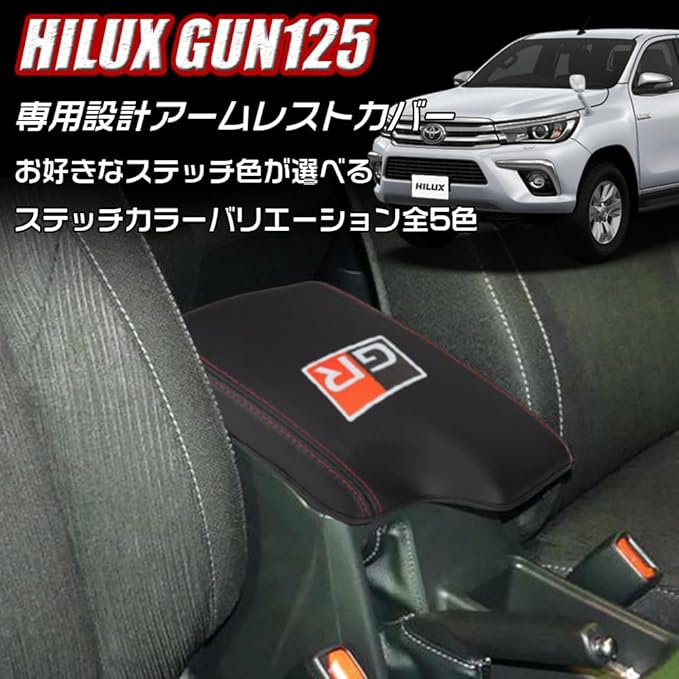トヨタ ハイラックス GUN125系 専用設計 コンソールボックスカバー アームレストボックス アクセサリー カスタム パーツ GR ロゴ付 ドレスアップ 内装 汚れ防止 引っかき傷対策(レッドステッチ)