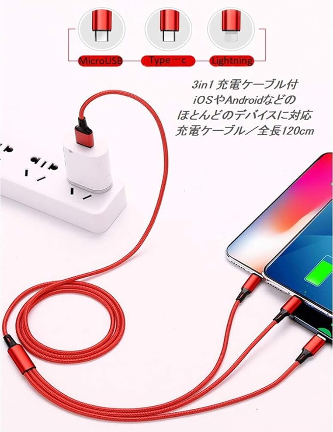 しかもケーブルは3in1でお持ちのスマホやその他の電子機器に合わせて使え大変便利です。
