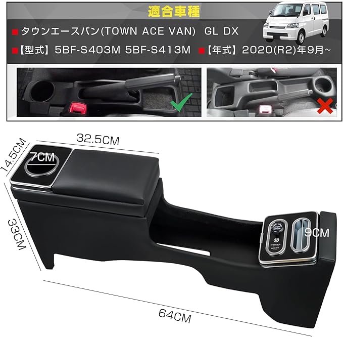 【適合車種】本コンソールボックスはトヨタ タウンエースバン GL DX TOWNACE VAN 5BF-S403M 5BF-S413M 2020年9月~に適用する。※:2020年6月までライトエースバン/タウンエースバンの車に適用できませんので、純正センターコンソールの形状をご確認の上に購入ください。