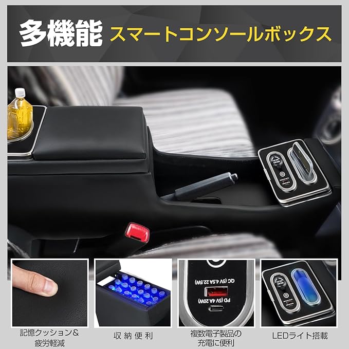 POWER PANDA コンソールボックス タウンエースバン GL DX 専用 アームレスト TOWNACE VAN 5BF-S403M 5BF-S413M 2020年9月~ 適用 センターコンソール 肘置き ドリンクボルダー付き 小物入れ 収納便利 肘掛け 黒