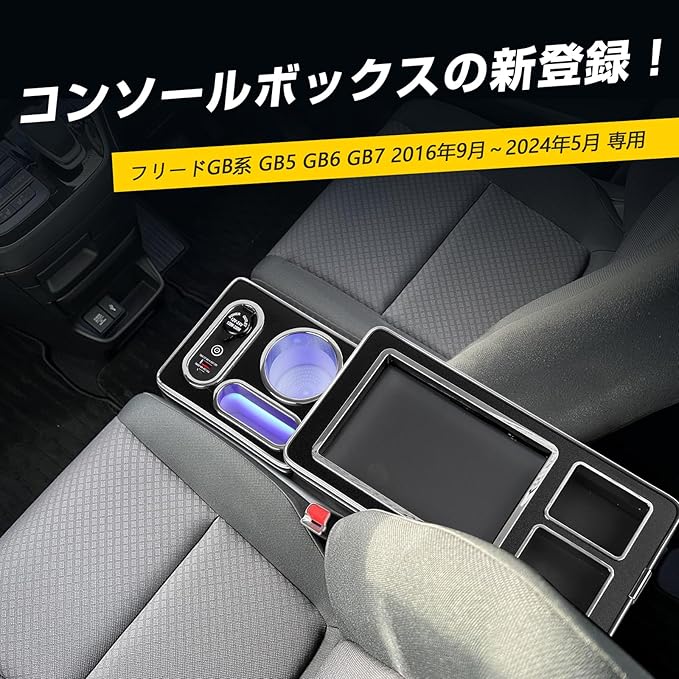 【適合車種】コンソールボックスはフリード/フリードプラス GB5 GB6 GB7 ハイブリッドB・G・EX・クロスター・モデューロX 2016年9月~2024年5月に適用する。※:GB8には対応できませんので、車種やサイズをご確認の上ご購入ください。アームレスト本体のサイズは50*32*16cmです。