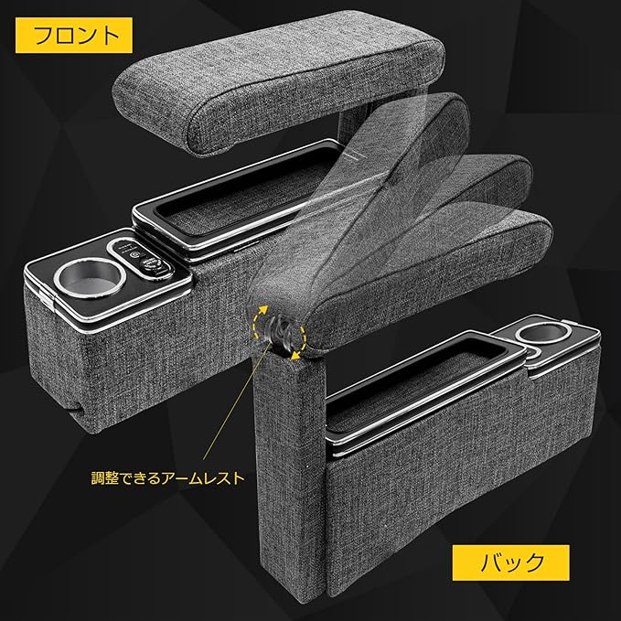 WALKEY 【肘置きの調整可能】コンソールボックス トヨタ シエンタ 170系 前後期 適用 車 アームレスト シエンタ 10系 15系 SIENTA 専用 センターコンソールボックス スマートコンソール 肘置き Type-C QC3.0 USBポート ドリンクボルダー付き 小物入れ 多機能 収納便利