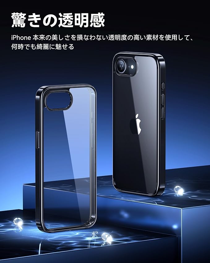 NIMASO iPhone 16e 用 ケース 第4世代 クリア 黄変防止 耐衝撃 米軍MIL規格 SGS認証 PC背面 いPhone 16e 対応 ケース 傷つけ防止 超薄型 軽量 ワイヤレス充電対応 ストラップホール付き アイフォン 16e対応(6.1インチ) スマホケース ブラック(氷星シリーズ) NSC24L1579