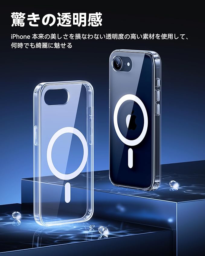 NIMASO iPhone 16e 用 ケース MagSafeアクセサリー用 クリア 黄変防止 耐衝撃 米軍MIL規格 SGS認証 PC背面 いPhone 16e 用 ケース 傷つけ防止 超薄型 軽量 ワイヤレス充電対応 アイフォン 16e用(6.1インチ) スマホケース クリア(氷星シリーズ) NSC24L1580