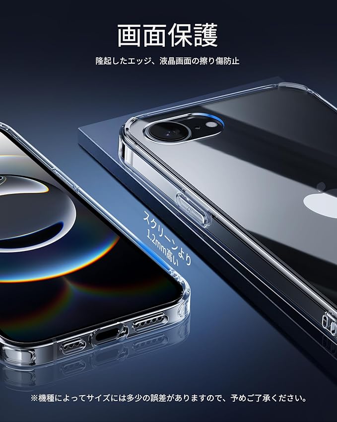 【細部まで保護】ケースは液晶画面より1.2mm高く、ディスプレイのダメージを最低限まで抑えます。細部まで保護しており、安心感は抜群です。また、iphone 16e 用 ケースに付いているストラップホールにストラップをつければ、紛失や落下を防ぐことができます。ご注意:本ケースはカメラレンズ保護する設計がありません。ケースを装着したときに、わずかにレンズの方が高くなる可能性があります。レンズ部分も強化したい方は、是非とも弊社のレンズフィルムとの併用をご検討ください。