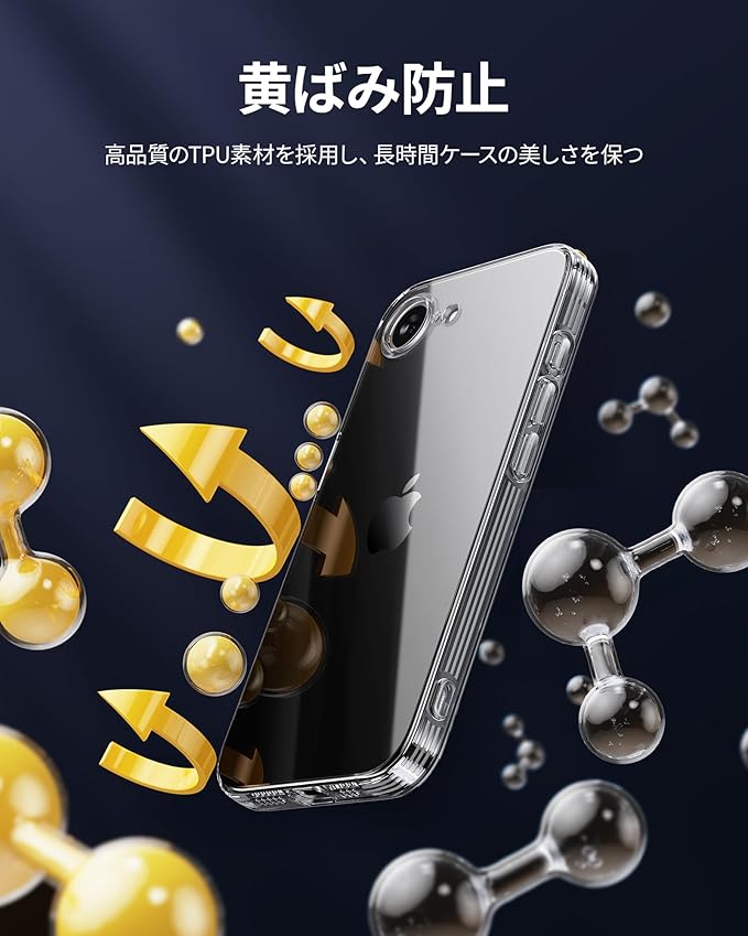 【高透明度・黄変防止】高級熱可塑性ポリウレタン(TPU)素材を採用する、従来のケースと比べてより透き通った透明感を保つことができ、長期間経ってもケースが黄変しにくく、iPhone16e本来の美しさを楽しめます。