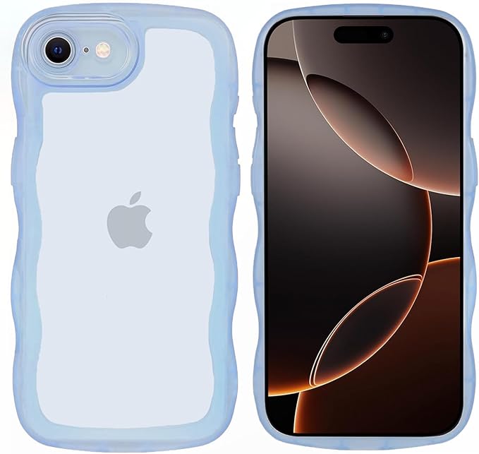 iPhone 16e ケース クリア ウェーブ アイフォン16eケース 韓国 うねうね おしゃれ 黄ばみなし かわいい ソフトTPU 滑り止め 薄型 軽量 iPhone 16e スマホケース ワイヤレス充電対応 ストラップホール付き アイフォン 16e ウェーブ カバー 半透明 (クリア/ブルー)