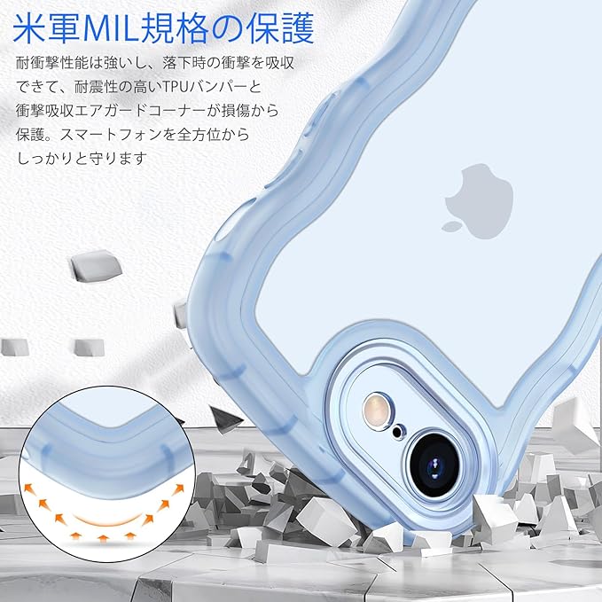 【かわいい波枠】これはiPhone 16e ケース用のクリアユニークな境界デザインで。かわいい波状のボーダーが指にフィットし、摩擦が高まります。透明度が高く、黄変防止を実現しました、スマホ本体の美しさを完璧に見せる、携帯電話をよりファッショナブルで目を引くようにします。ファッションと実用性の完璧な組み合わせ。柔らかTPU素材なので着脱簡単です。