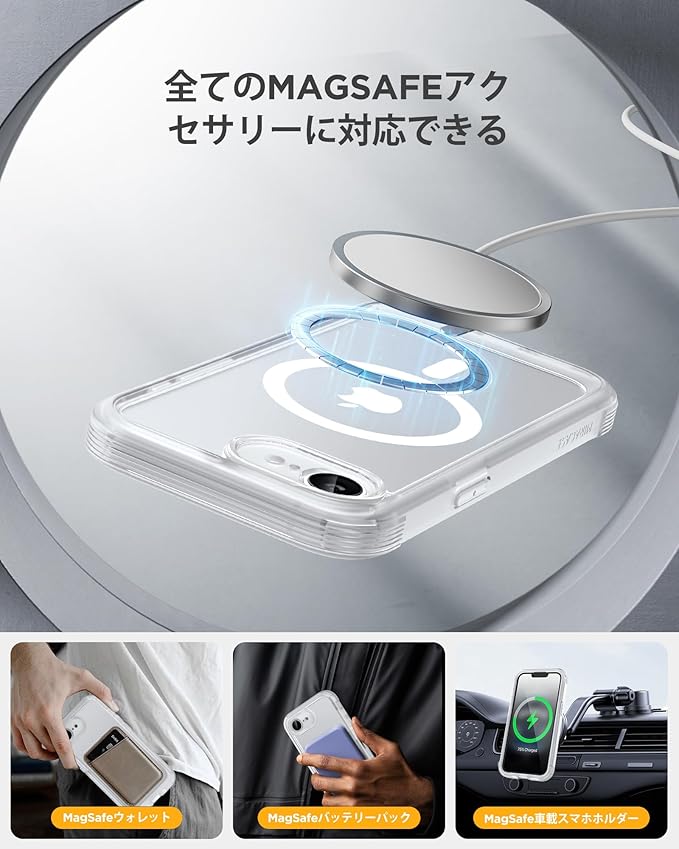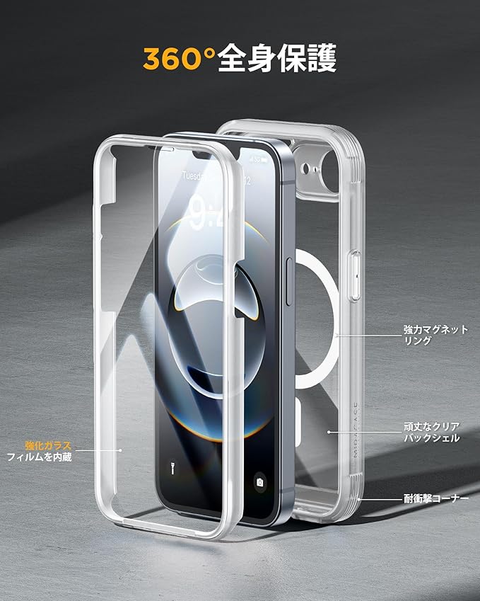 Miracase iPhone 16E ケース MagSafe対応 あいふおん16e スマホケース 2025 9H強化ガラス 6.1インチ フルカバー 360 全身保護 ワイヤレス充電対応 マットクリア
