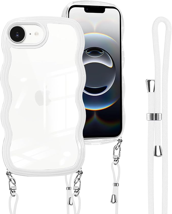 iPhone 16e 用 ケース ショルダー ストラップiPhone16e 用 カバー 斜めかけ 首掛け 肩がけ クリア 韓国 アイフォン16e 用 スマホケース ホワイト