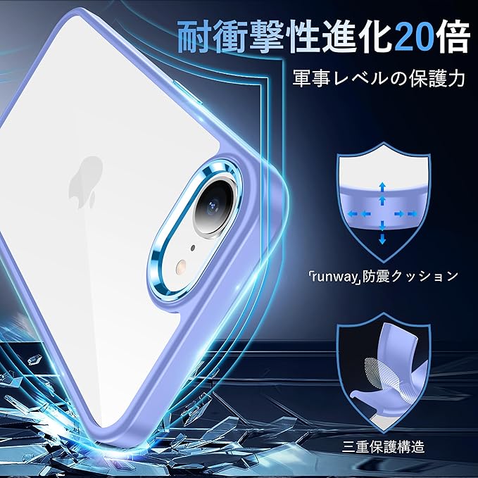 iPhone 16e ケース ペールパープル 耐衝撃 ガラスフィルム付き アイフォン16eケース 米軍MIL規格 耐久性 iPhone16E 黄ばみ防止 アイホン16E ワイヤレス充電対応 あいほん16E SGS認証 あいふぉん16E カバー 6.1インチ 透明 ストラップホール付き gogorelax
