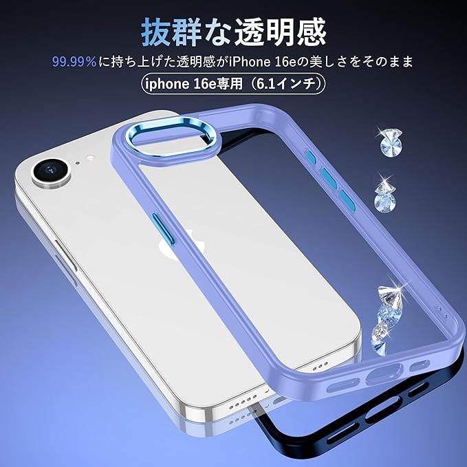 【高い透明度・黄変に強い】99.99%に持ち上げた透明感がiPhone 16Eの美しさをそのまま。厳選した高透明度、更に耐黄変に強い特殊なポリカーボネート素材を採用、指紋がつきにくい・黄ばんでなく正真正銘のクリア!いPhone16eのリアルな色と高級感を損なわなく、本来の美しさを楽しむことができます。