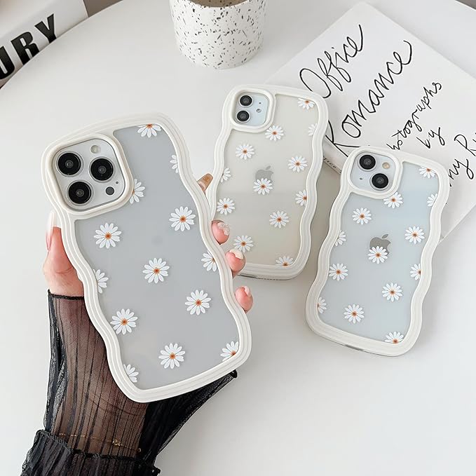 ZTOFERA iPhone 16e ケース用、クリアデイジー TPU 電話カバー、ウェーブフレーム透明電話カバー、かわいい波状 iPhone 16e ケース用