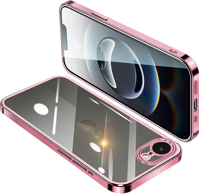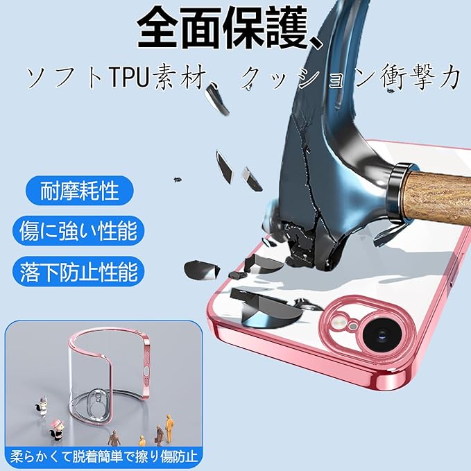 iPhone16e ケース クリア アイフォン16e カバー 透明 スマホケース 耐衝撃 軽量 メッキ加工 TPU 薄型 ストラップホール付き 滑り止め 落下防止 6.1インチ(ローズゴールド)