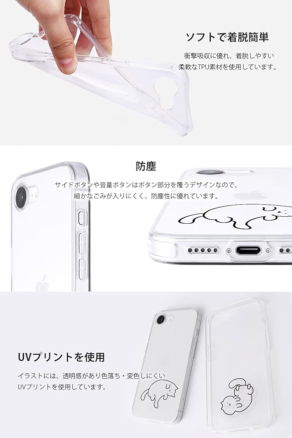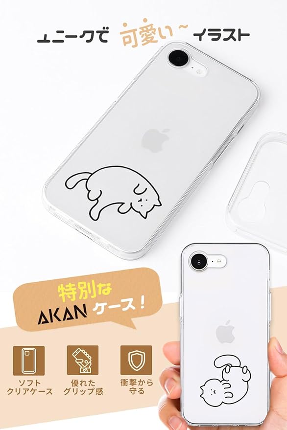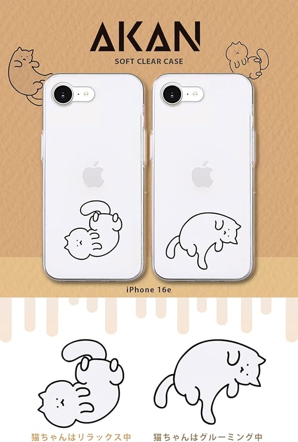 AKAN iPhone 16e ケース ソフトクリアケース [ 密着痕防止 TPU 変色しにくいUVプリント 防塵 ワイヤレス充電 透明 ] かわいい 人気 キャラクター アップル アイフォンケース SE 第4世代 AK27570i16E 猫ちゃんはグルーミング中【国内正規品】