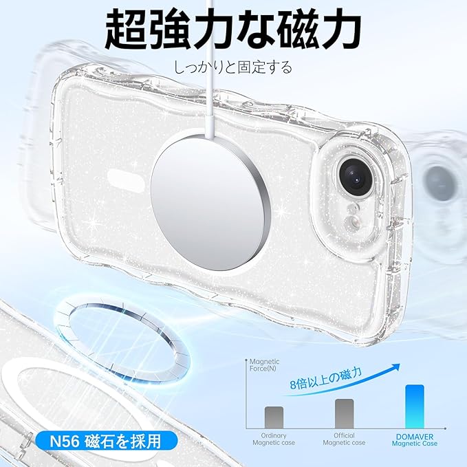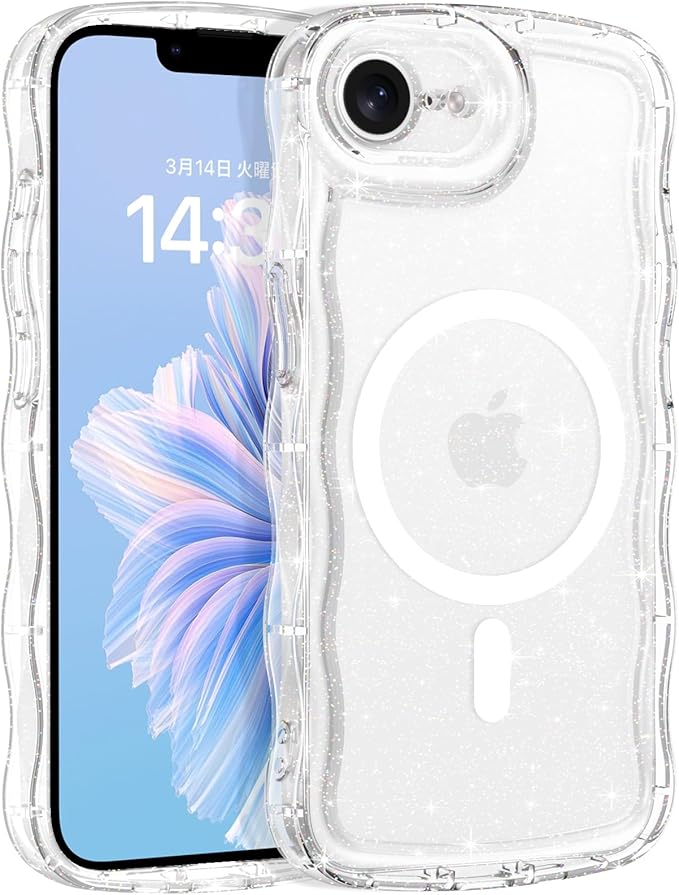 DOMAVER iPhone 16e 用ケース クリア キラキラ 波型 うねうね かわいい 韓国 人気 可愛い ソフト 超軽量 耐衝撃 指紋防止 ストラップホール付き 透明 おしゃれ ウェーブ カバー iPhone16e iPhone SE4 スマホケース 6.1インチ クリア