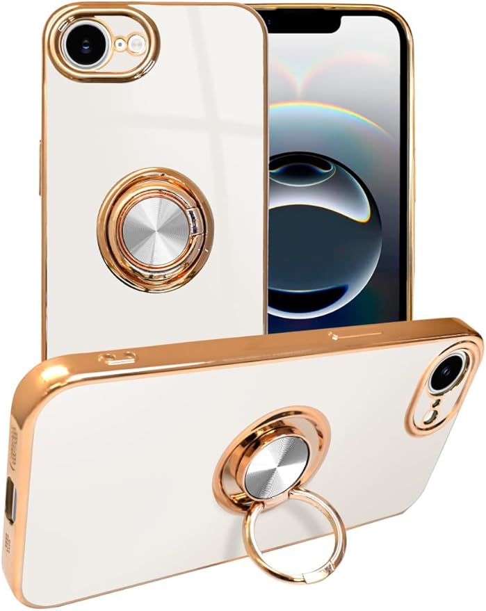 シズカウィル iPhone 16e スマホケース スマホリング グリッティア リング付きケース 1個入り パールホワイト