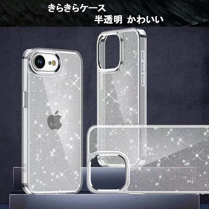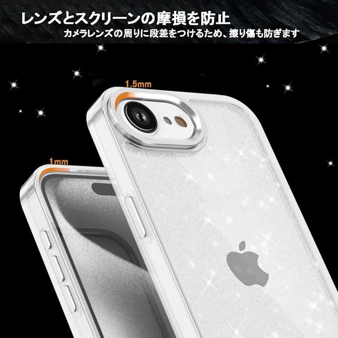 スマホケース 対応 iPhone 16e ケース クリア ケース 透明 きらきら ブリンブリン 衝撃吸収 かわいい キラキラ 女性 人気 キャラクター おしゃれ アイフォン16e 用 携帯カバー (クリア, iPhone 16e)