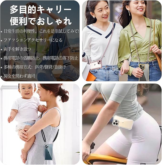 【ショルダーストラップ 付き】電話ケースの特別な四隅のデザインにより、ストラップを垂直または水平にリンクできます。柔らかいナイロンストラップで首を快適に保ち、ストレッチの長さを調整でき、ストラップを取り外して、スマホケースを単独で使用できます。