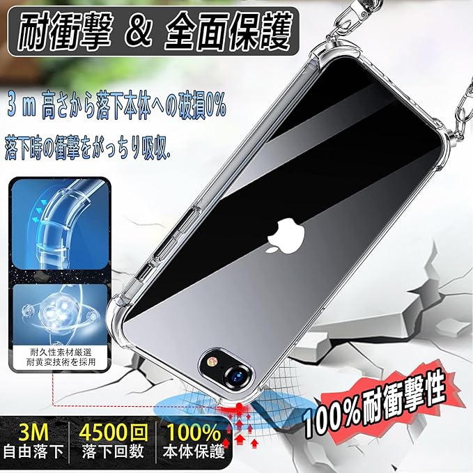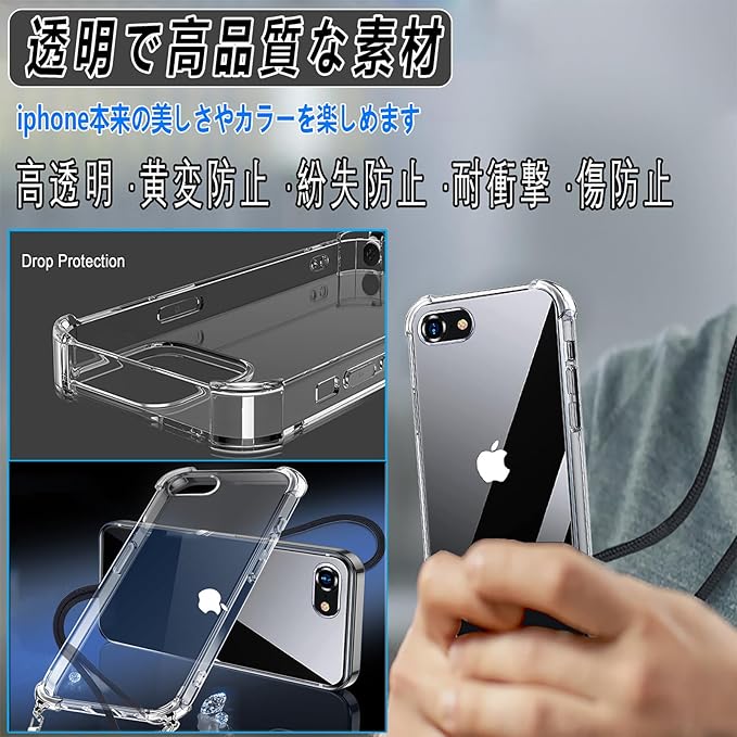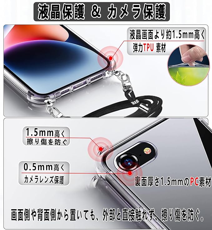 iPhone 16e ケース いphone16eカバー アイフォン 16e ケース ショルダー [ストラップ2本付き] 紐付き 肩がけ 首掛け 縄掛け ストラップホール付き 薄型 透明 ハード PC+シリコン TPU バンパー 耐衝撃 米軍MIL規格 長さ調整可能 あいほん16E カバー (クリア)