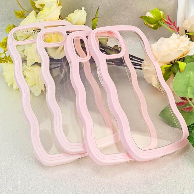スマホケース 対応 iPhone 16e ケース クリア 透明 TPU 韓国 かわいい ウェーブ ソフト 滑り止め 薄型 軽量 耐衝撃 女性 人気 おしゃれ スマホケース ストラップホール付き 対応 アイフォン16e 携帯電話 カバー (ピンク, iPhone 16e)
