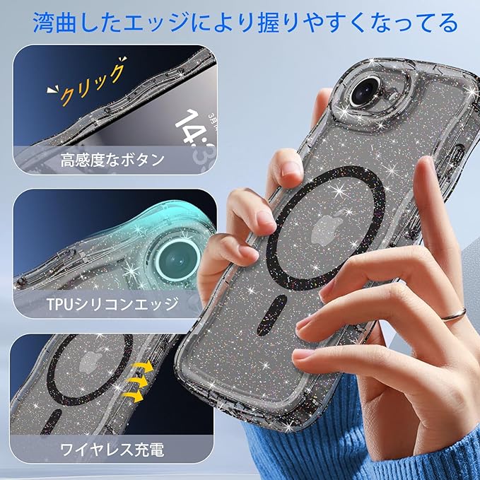 ♥【iPhone 16e 対応】iphone 16e ケース キラキラ うねうね 透明 人気 韓国 耐衝撃 超軽量 薄型 おしゃれ あいふおん16eケース、TPUケースはいPhone16e のみに適合します。スクリーンプロテクターは付属していません。ボタンが軽くて押しやすい。きらきら可愛いとウェーブエッジの透明ケース