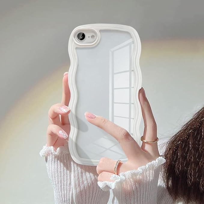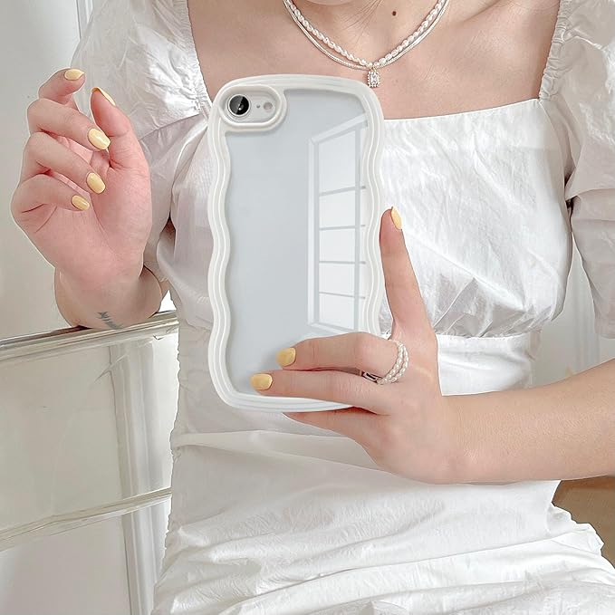 UEEBAI 対応 iPhone 16e/iPhone se4 用の ケース ソフト TPU カバー 可愛い おしゃれケース 透明 ウェーブ デザイン スマホケース ワイヤレス充電対応 軽量 薄型 耐衝撃 人気 波型 バンパー スマホケース - ホワイト