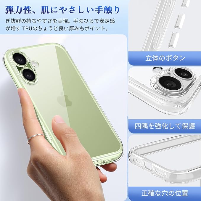 【超薄型】 厚さが約1mmと極薄なので、長く持っても手が疲れる感じもありません。透明な薄い iPhone 17 用 ケースを着た後に、あなたは重い感じがしません、またあなたの携帯電話を保護します。