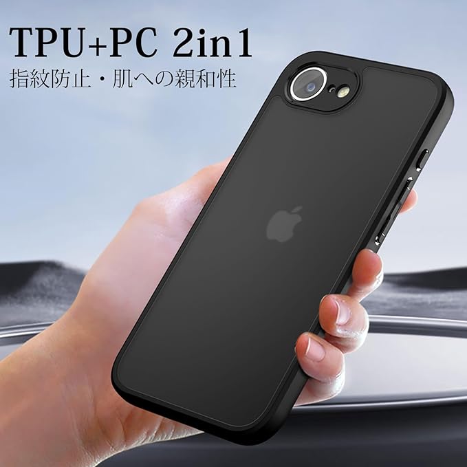 【TIFIYA】For iPhone 16e 用 ケース iPhone SE 第4世代 カバー 落下防止 指紋防止 傷つけ防止 TPU+PC 黄ばみなし 衝撃吸収 アイフォン 16e 対応 ケース 耐久性 軽量 iphone se4 保護カバー (ブラック/半透明)