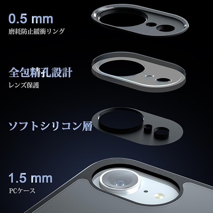 【レンズとスクリーン保護】ケースの厚さは本体より若干高く、スマホが机などの平面の物の上に置いても傷がつかない。スマホが落下した際に液晶画面やレンズに傷が付かないようにする。