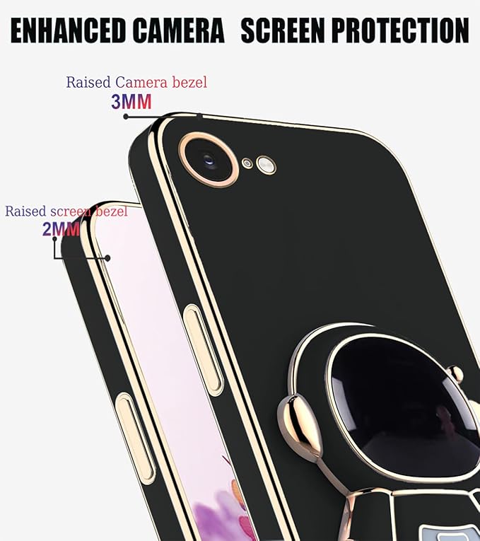 ケース対応:iPhone 16e ケース宇宙飛行士隠し スタンド機能iPhone 16eカバー耐衝撃 可爱い 人気 スマホカバー iPhone 16e 立体 軽薄型 (黒)