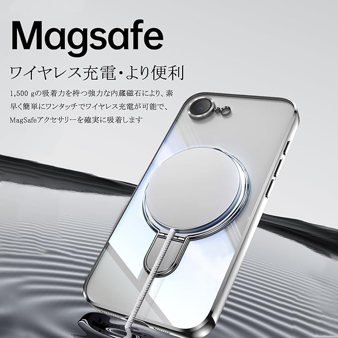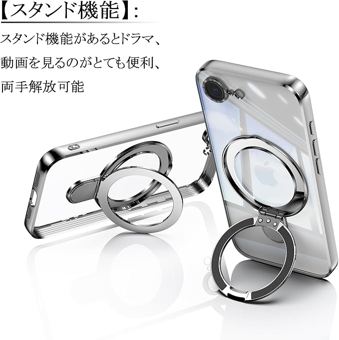 スマホケース 対応 iPhone 16e ケース MagSafe対応 クリア 透明 リング付き メッキ仕上げ レンズカバー付き ソフトTPU 耐衝撃 傷に強い背面 ワイヤレス充電 ストラップホール付き アイフォン16e 磁気カバー (シルバー, 16e)