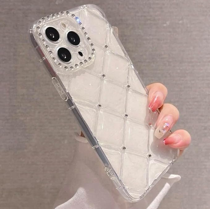 アイフォン用ケース シルバーストーン キルティングケース 凸凹 大人 きらきら 可愛い スマホケース カバー ソフト キルティングデザイン レディース 女性 かわいい カワイイ シルバー アイフォンケース お洒落 (クリア 透明, 16e用)